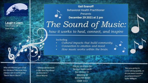 Gail Evanoff will present “The Sound of Music: how it works to heal, connect, and inspire.”