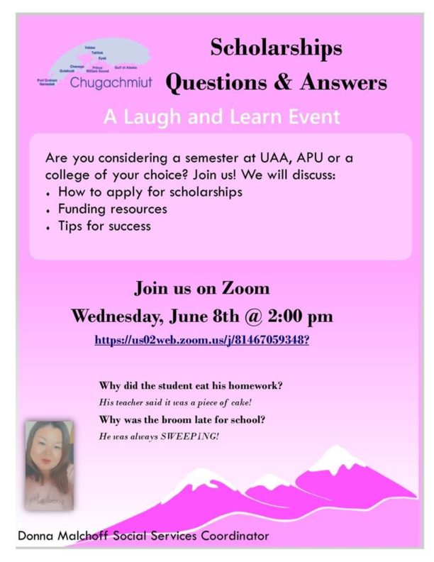Donna Malchoff will present “Scholarships: Questions & Answers.”